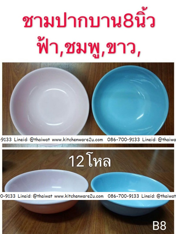P03719 ชามแกงปากบาน 8 นิ้ว สีพื้น ใส่อาหารได้ ABS PT ราคาส่งต่อ 12 โหล : 144 ใบ: เฉลี่ย 180 บ.ต่อโหล