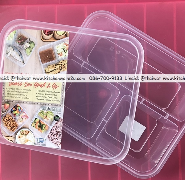 P10931 กล่องเบนโต๊ะ แบ่ง 3 ช่อง (20*22.5*5.5 ซม.) ใส่อาหารเวฟซ้ำได้ No.9807 (ราคาส่งต่อ 1 โหล: 12 ใบ)