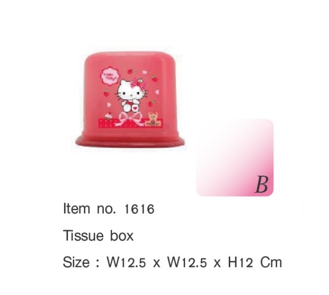 P10436 กล่องทิชชู่เหลี่ยม ลายคิตตี้ (12.5*12.5*12 cm) เกรดเอ สีสวย ลิขสิทธิ์ถูกต้อง No.1616 (ราคาส่งต่อ 1 โหล:12 ใบ: 200 บ/โหล)