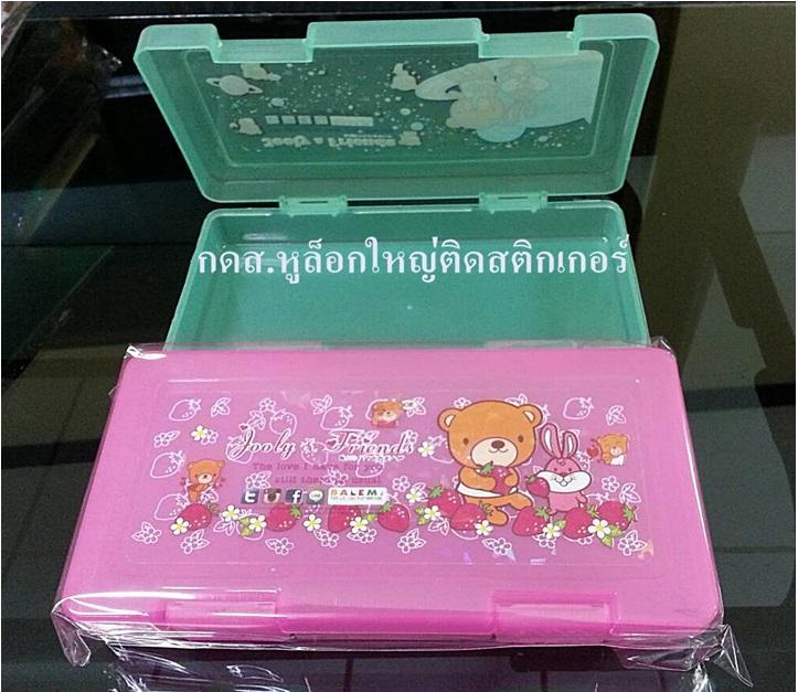 P09929 กล่องดินสอพลาสติก หูล๊อค ติดสติกเกอร์ สีหวาน สวย ราคาส่งต่อ 1 โหล: 12 ชุด (190 บ/โหล ขายส่งทุกอย่าง 20 บาท)