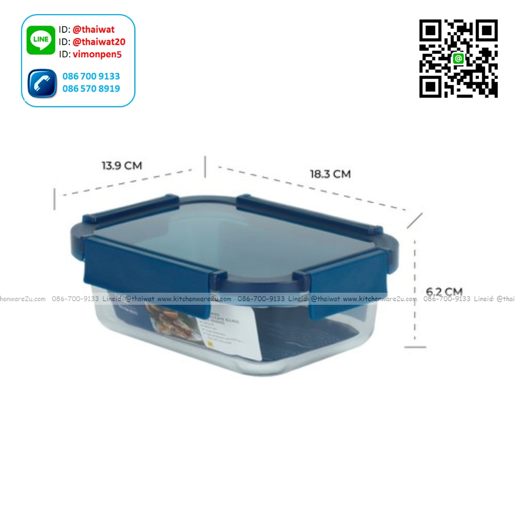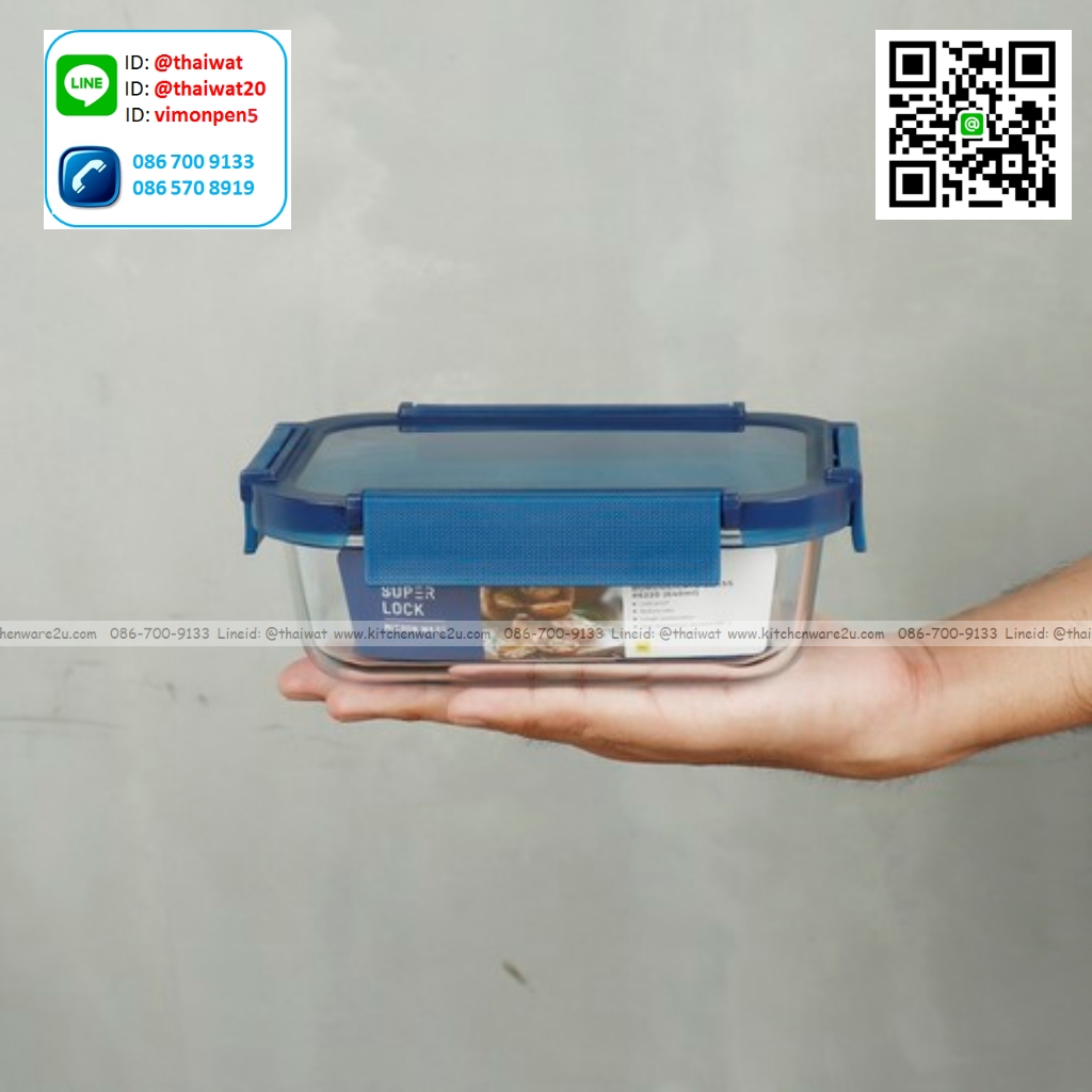 P12264 Super Lock กล่องแก้วถนอมอาหาร ทรงผืนผ้า ความจุ 640 มล. (13.9*18.3*6.2 cm) รุ่น 6220 ราคาขายส่งต่อ 1 โหล: 12 ใบ : เฉลี่ย 75 บต่อใบ