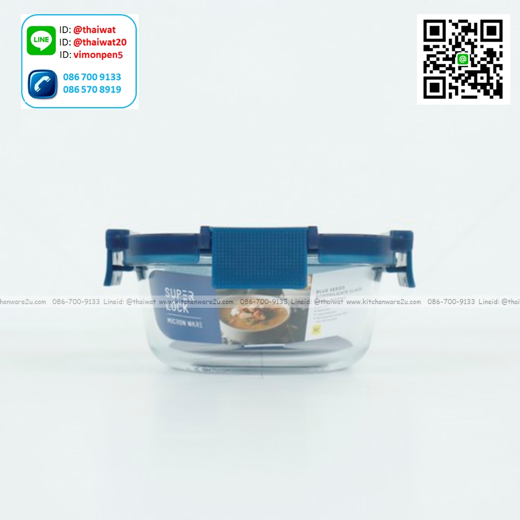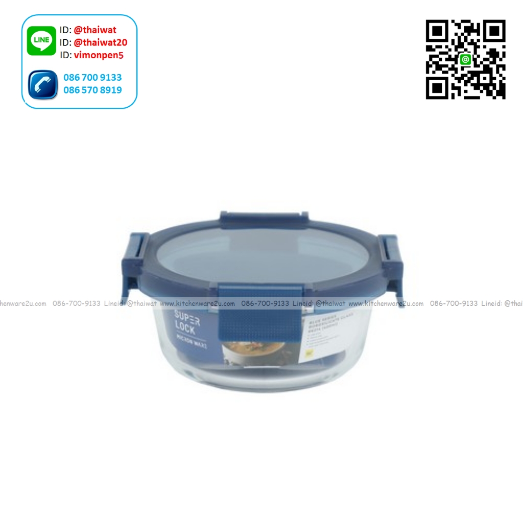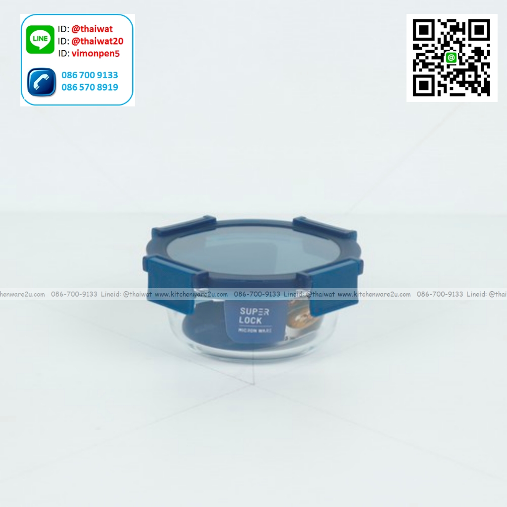 P12258 Super Lock กล่องแก้วถนอมอาหาร ทรงกลม ความจุ 400 มล. (13.5*13.5*6 cm) สีฟ้า รุ่น 6214 ราคาขายส่งต่อ 1 โหล: 12 ใบ : เฉลี่ย 55 บต่อใบ