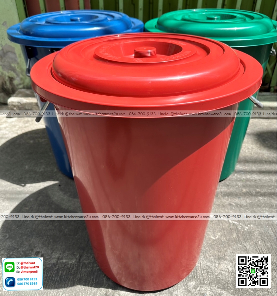 P04945 ถังน้ำพร้อมฝา 30 แกลลอน หูเหล็ก (กว้าง 52 ยาว 52 สูง 66 ซม.) สี No.319copo ราคาส่งต่อ 6 ใบ (เฉลี่ย 280 บ/ใบ) ขนาด กว้าง 52 ยาว 52 สูง 66 ซม.