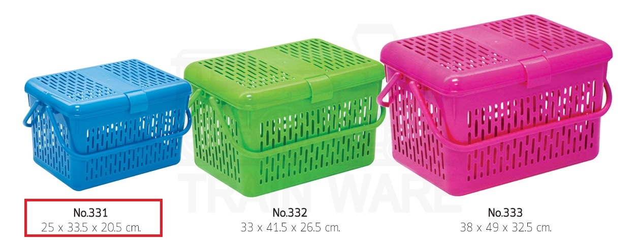 P10742 ตะกร้าหูหิ้ว มีฝาปิด (25x33.5x20.5 ซม.) เกรดเอ No.331 ขายยกลัง 24 ใบ (ราคาส่งต่อ 24 ใบ :เฉลี่ย 60 บต่อใบ)