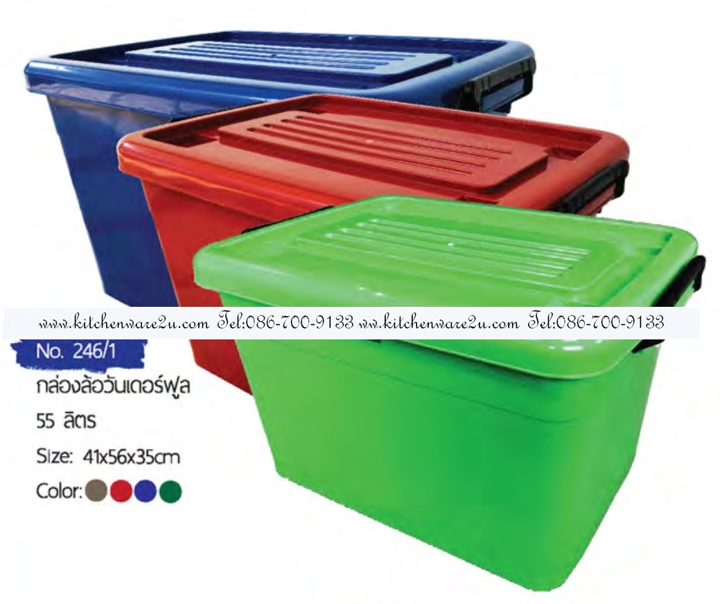 P02405 กล่องล้อ 55 ลิตร (41*56*35 cm) สีหวาน No.247 ราคาส่งต่อ 12 ใบ (เฉลี่ย 120 บต่อใบ)