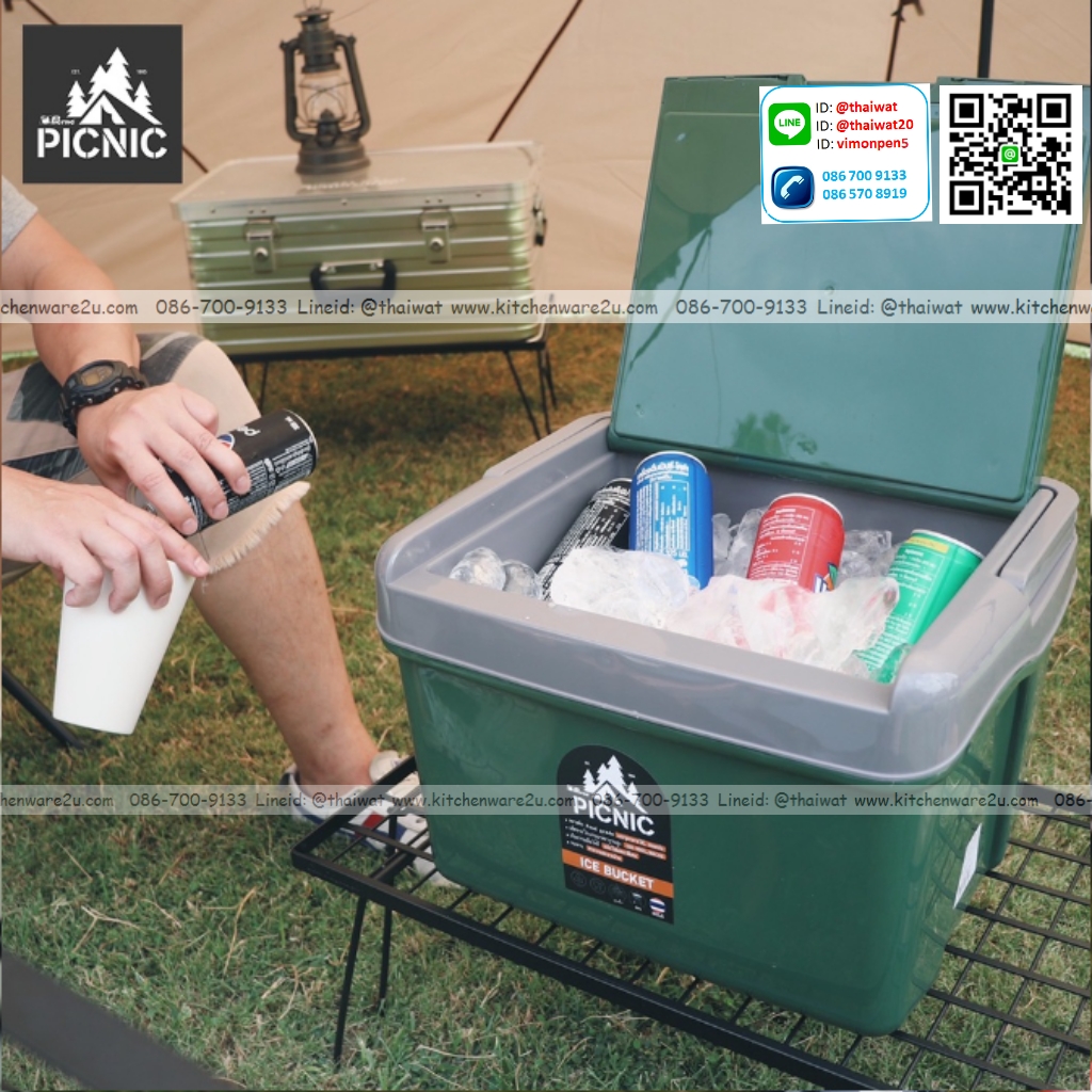 P12186 กระติกน้ำแข็ง ถังน้ำแข็ง ถังแช่เอนกประสงค์ 17 ลิตร มีล้อเลื่อน และสายคล้อง (L17) (30*38*28 cm) สีเขียว+ขาว ราคาขายส่งต่อ  6 ใบ: เฉลี่ย 325 บต่อใบ