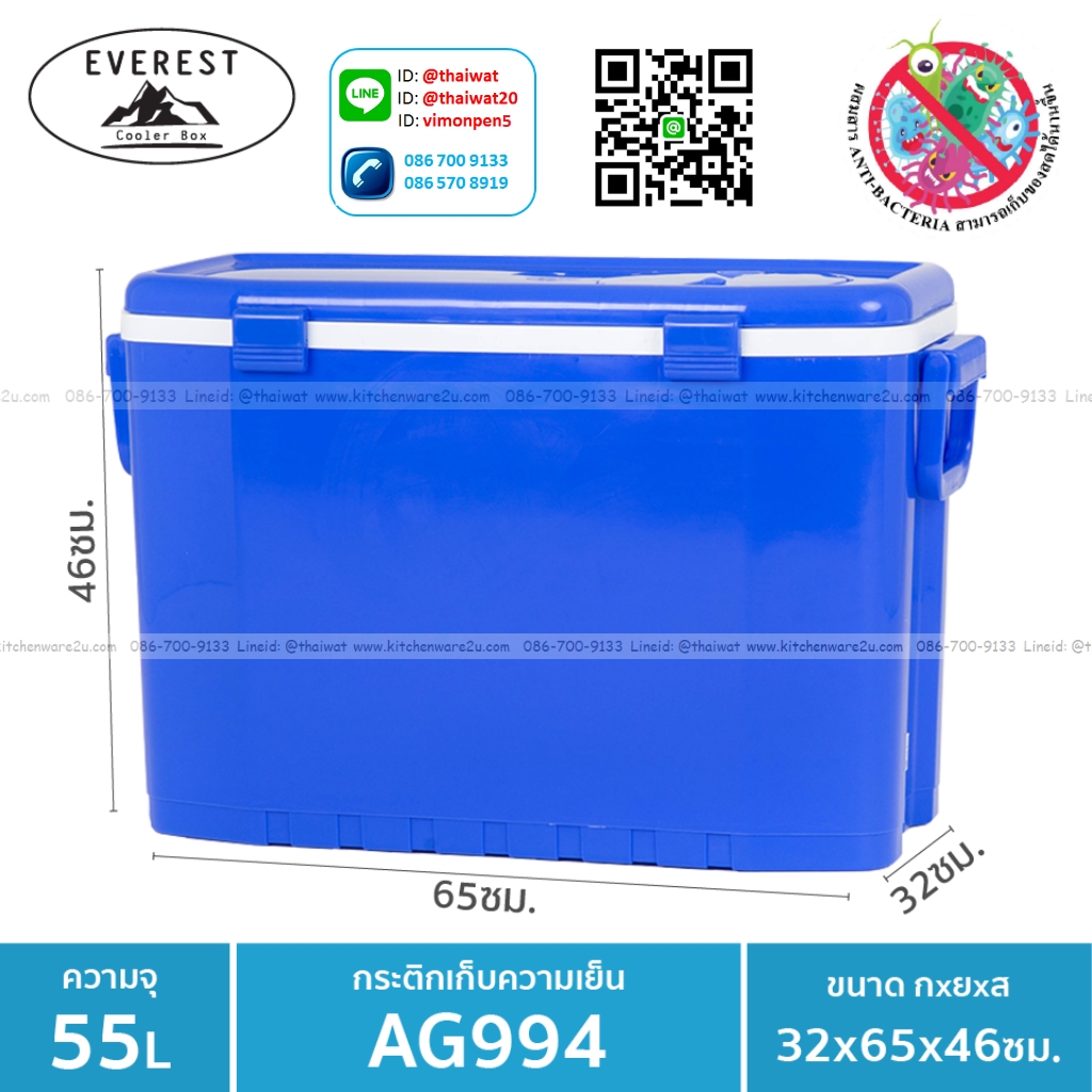 P11443 EVEREST กระติกน้ำแข็ง ถังแช่อเนกประสงค์ ขนาด55ลิตร รุ่น AG994 (46*65*32 cm) เกรดเอ (ราคาส่งต่อ 3 ใบ :เฉลี่ย 1080 บต่อใบ)