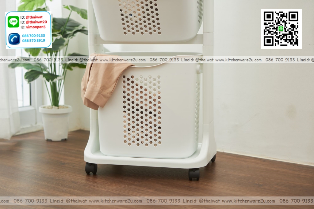 P12123 ชุดตะกร้าเอนกประสงค์ 2 ใบ มีล้อ สีขาวเกรดเอ ดีไซน์ใหม่ No.1025M2 ราคาขายส่งต่อ 6 ชุด: เฉลี่ย 400 บต่อชุด