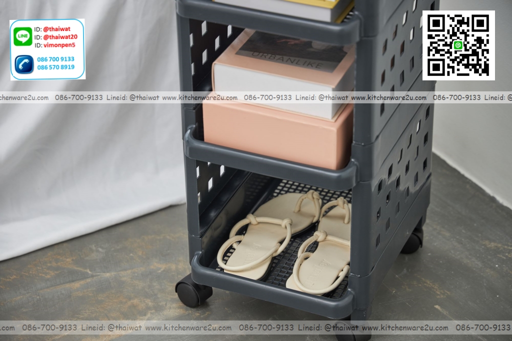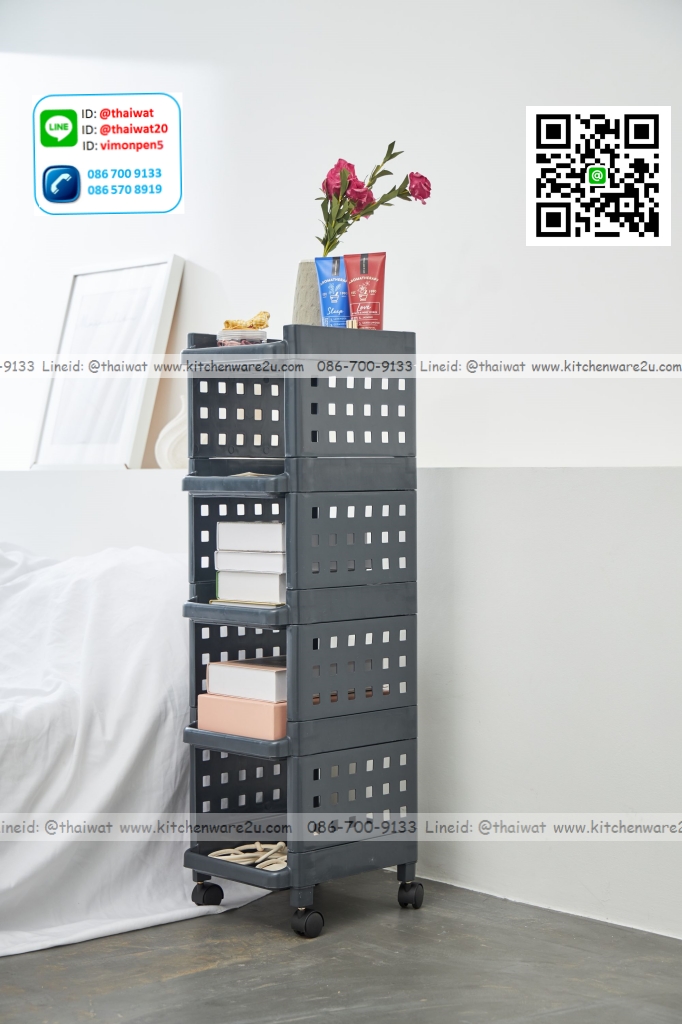 P05539 ชั้นวางของเอนกประสงค์ 5 ชั้น (33*27*97 cm) สีเทา มีล้อ ดีไซน์ใหม่ ราคาขายส่งต่อ 6 ชุด : 210 บต่อชุด