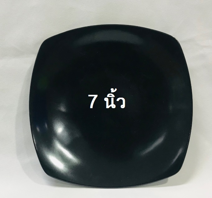 P10955 จานเหลี่ยม 7 นิ้ว สีดำ เมลามีนแท้ Flowerware เครือซูปเปอร์แวร์ No.P26370-7 (ราคาส่งต่อ 12 ใบ: เฉลี่ย 55 บ/ใบ)