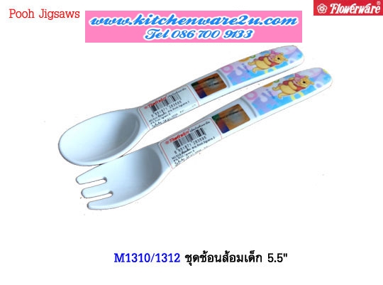 P09072 ช้อนส้อมเด็ก 5.5 นิ้ว ลายหมีพูห์ เมลามีนและลิขสิทธิ์แท้ Flowerware เครือซูปเปอร์แวร์ No.SP6336 (ราคาขายส่งต่อ 12 อัน: เฉลี่ย 22.5 บต่ออัน)