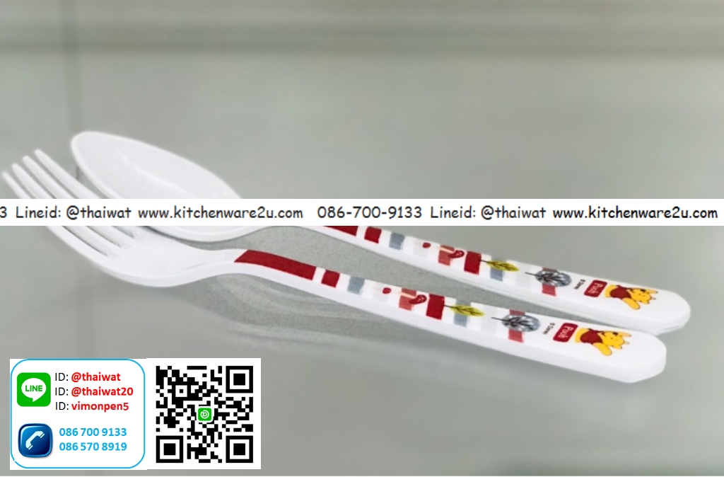 P09094 ชุดช้อนส้อมเด็ก 7.5 นิ้วลายหมีพูห์ เมลามีนและลิขสิทธิ์แท้ Flowerware เครือซูปเปอร์แวร์ No.SPF2358 No.SPF2358 (ราคาขายส่งต่อ 12 คู่: เฉลี่ย 52.5 บต่อคู่)