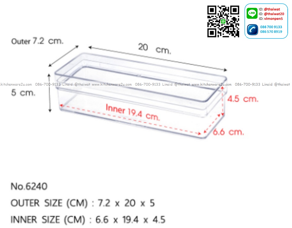 P06588 กล่องเหลี่ยมใส (7 x 20 x 5 cm) No.6240 (ราคาส่งต่อ 1 โหล: 12 ใบ:เฉลี่ย 37.5 บ/ใบ)